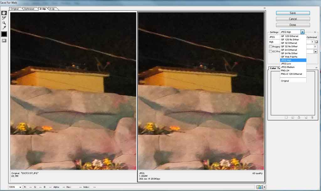 4º Passo – Na página seguinte você define o formato da imagem que gostaria de salvar e ainda pode ver um preview da imagem original com o da imagem otimizada para uma comparação do antes e depois.
